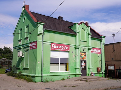 Budynek murowany jednopiętrowy, dach dwuspadowy kryty dachówką, zbudowany w 1910 roku (obecny sklep spożywczo-przemysłowy).