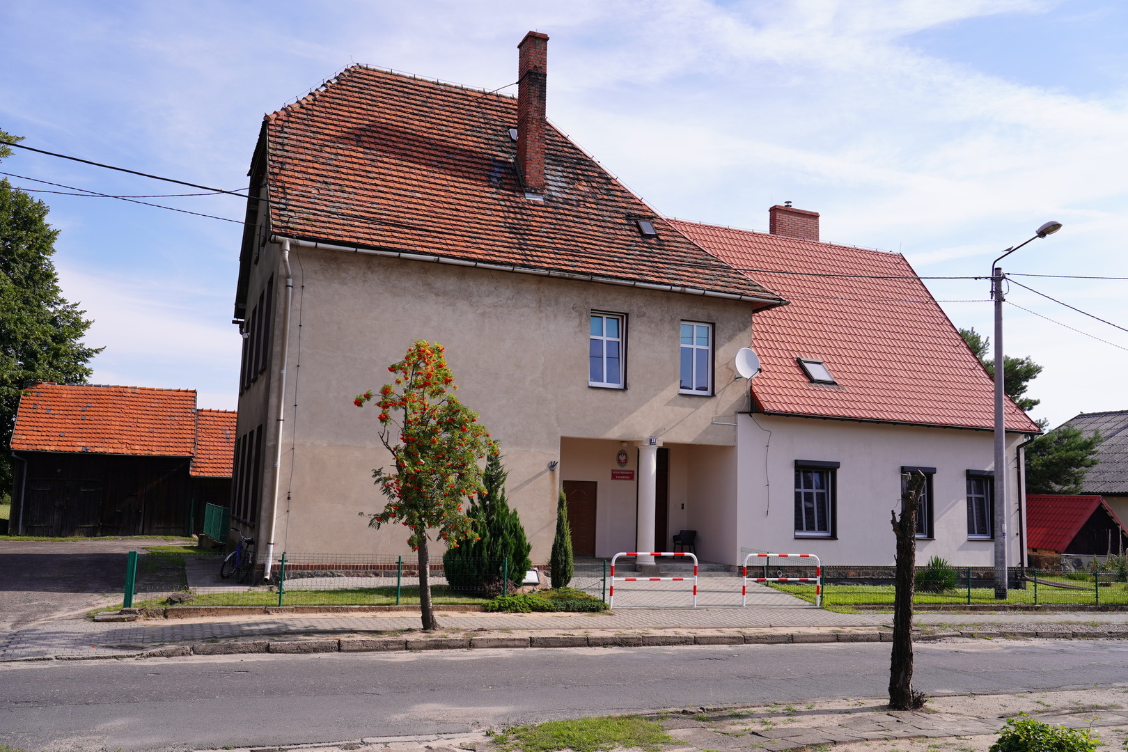 Budynek szkoły podstawowej zbudowany w 1909 roku, murowany, dach dwuspadowy, kryty dachówką.