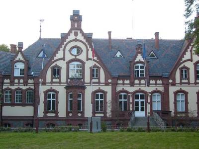 Pałac zbudowany w roku 1888. Fundatorem był Hardt. Budynek wybudowany z czerwonej cegły, utrzymany w stylu neogotyckim.