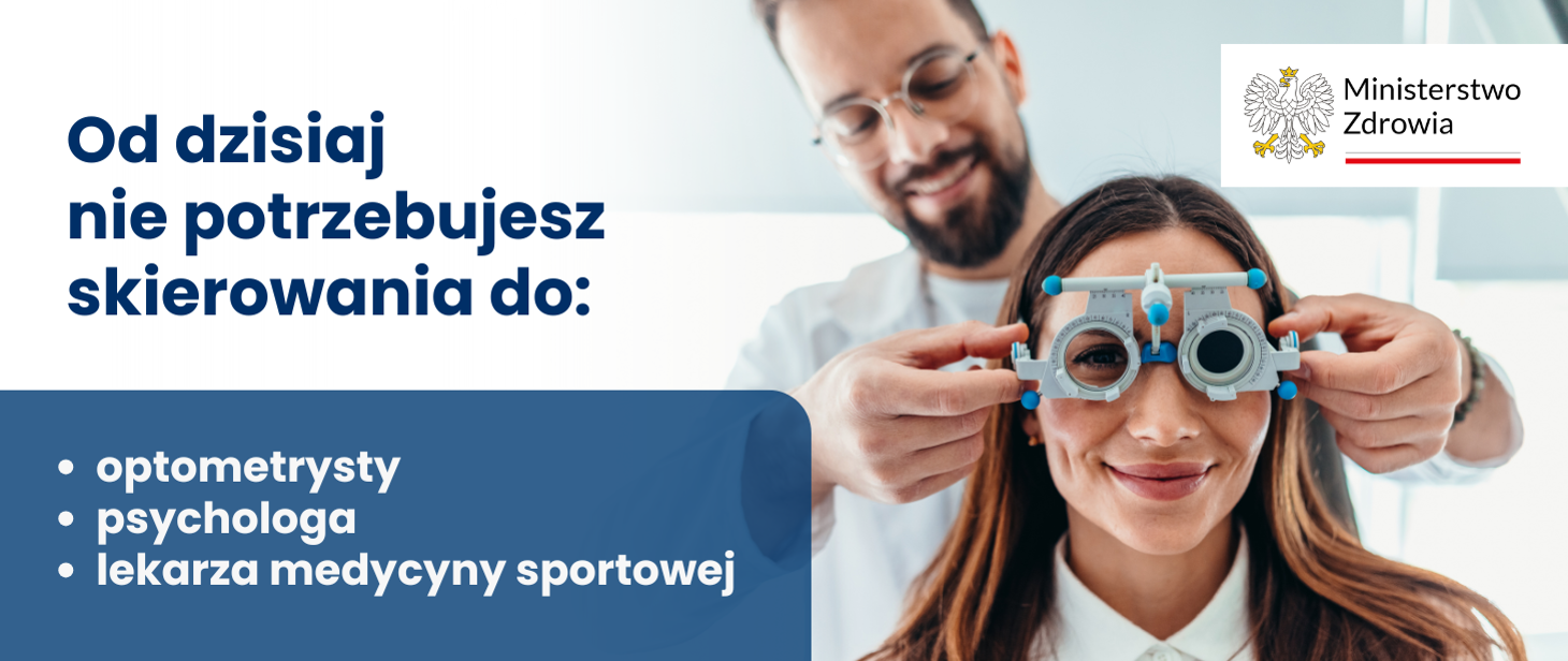 Zmiany mają na celu skrócenie ścieżki diagnostycznej i szybsze udzielanie pacjentom potrzebnej pomocy. Optometrysta będzie mógł wystawić skierowanie do okulisty, co uprości proces diagnozy i leczenia chorób oczu. W przypadku psychologa łatwiejszy dostęp do porad ma wspierać profilaktykę i wczesne reagowanie na problemy zdrowia psychicznego. Z kolei lekarz medycyny sportowej szybciej udzieli konsultacji osobom aktywnym fizycznie, w tym dzieciom i młodzieży, co pozwoli na wcześniejsze wykrywanie przeciążeń i zapobieganie poważniejszym kontuzjom.