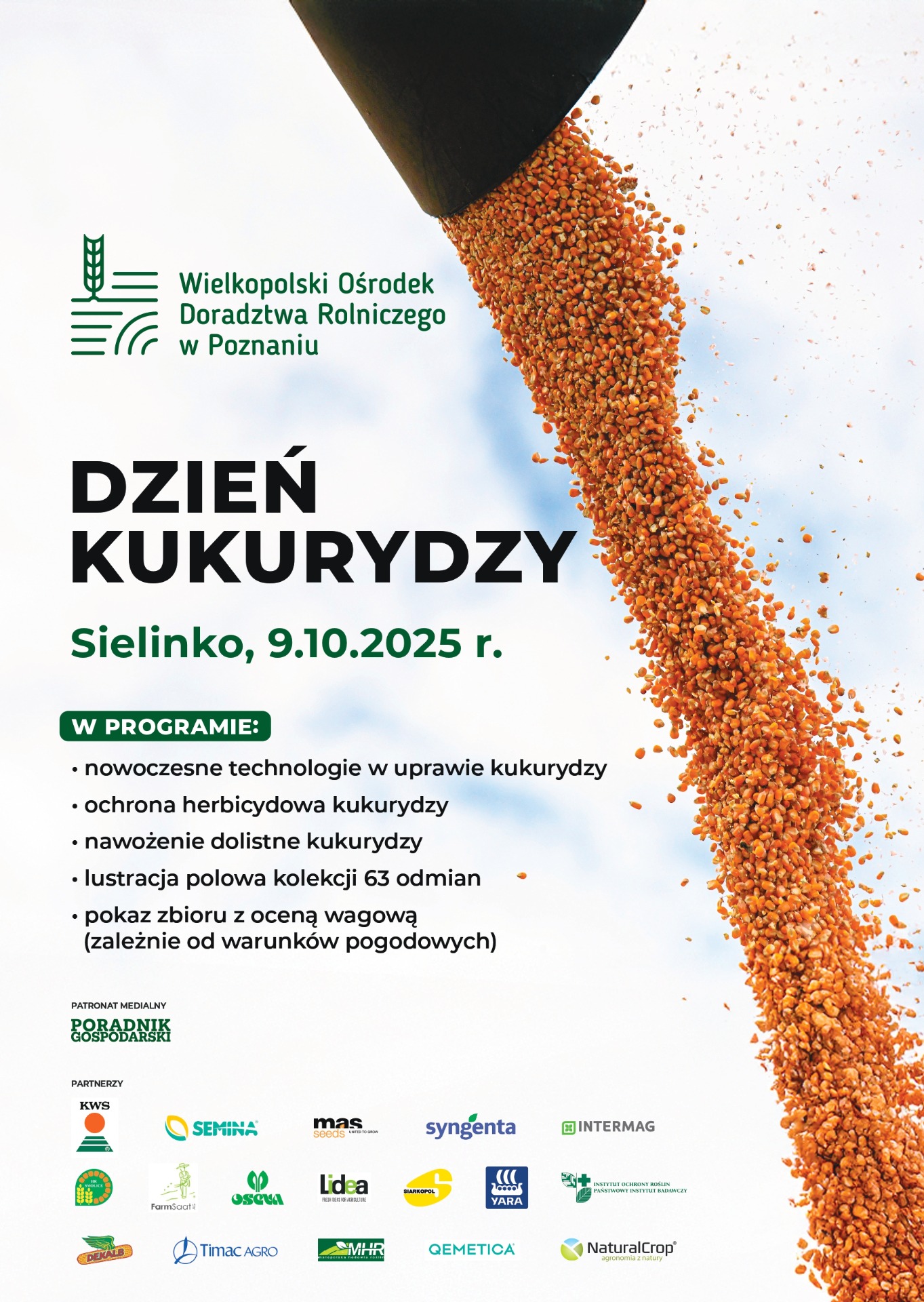 Wielkopolski Ośrodek Doradztwa Rolniczego w Poznaniu serdecznie zaprasza na DZIEŃ KUKURYDZY, który odbędzie się 9 października 2025 roku w Sielinku.