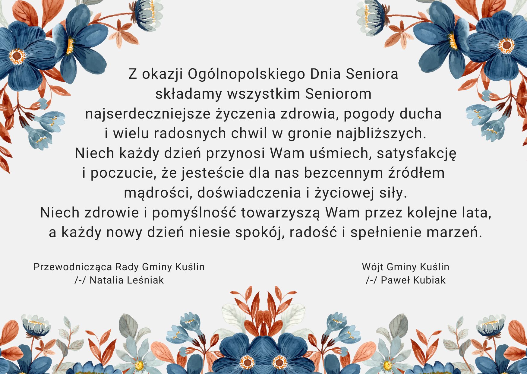 Z okazji Ogólnopolskiego Dnia Seniora składamy wszystkim Seniorom najserdeczniejsze życzenia zdrowia, pogody ducha i wielu radosnych chwil w gronie najbliższych.
