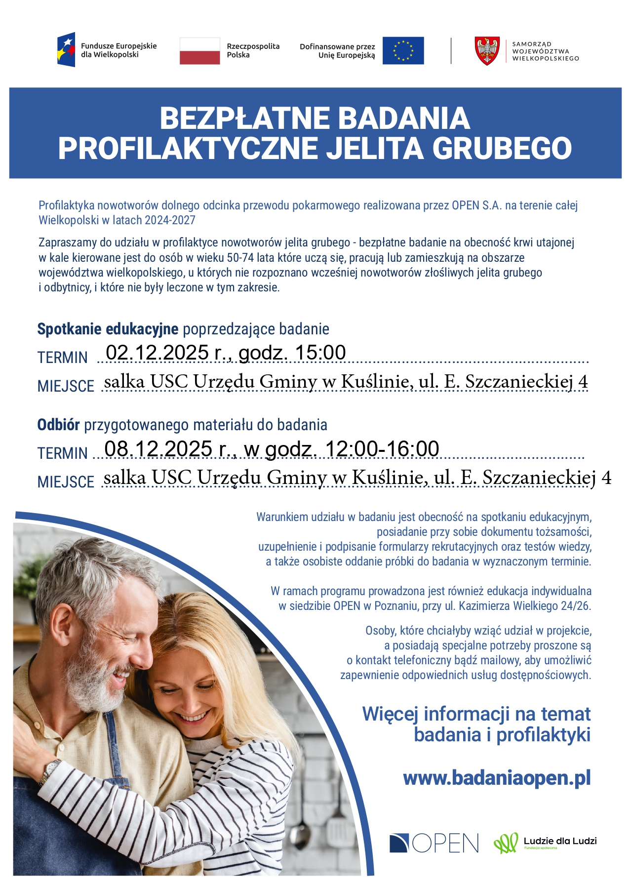 Profilaktyka nowotworów dolnego odcinka przewodu pokarmowego realizowana przez OPEN S.A. na terenie całej Wielkopolski w latach 2024-2027.