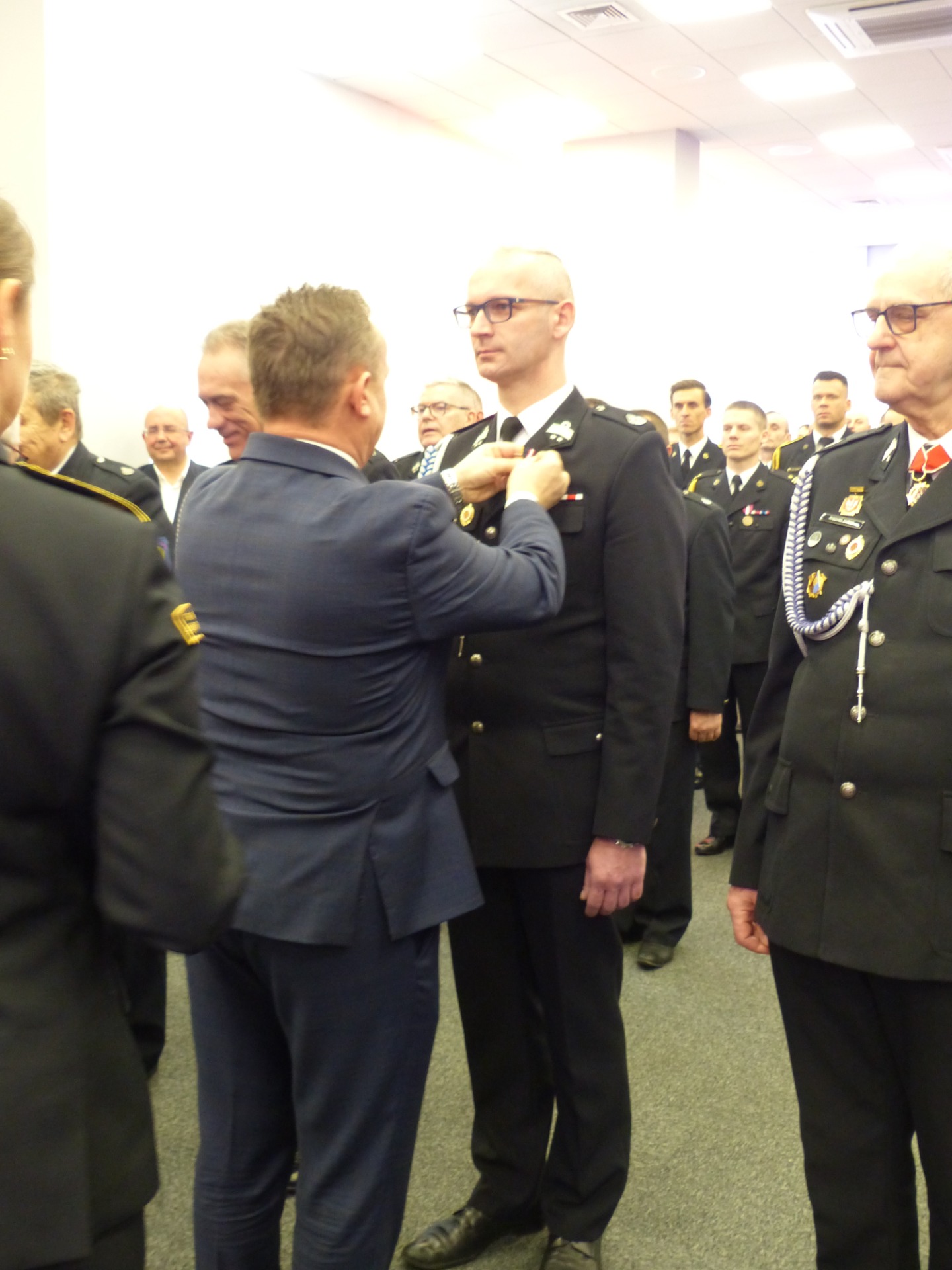 Z tej okazji wręczone zostały liczne wyróżnienia funkcjonariuszom Państwowej Straży Pożarnej oraz druhom Ochotniczej Straży Pożarnej.