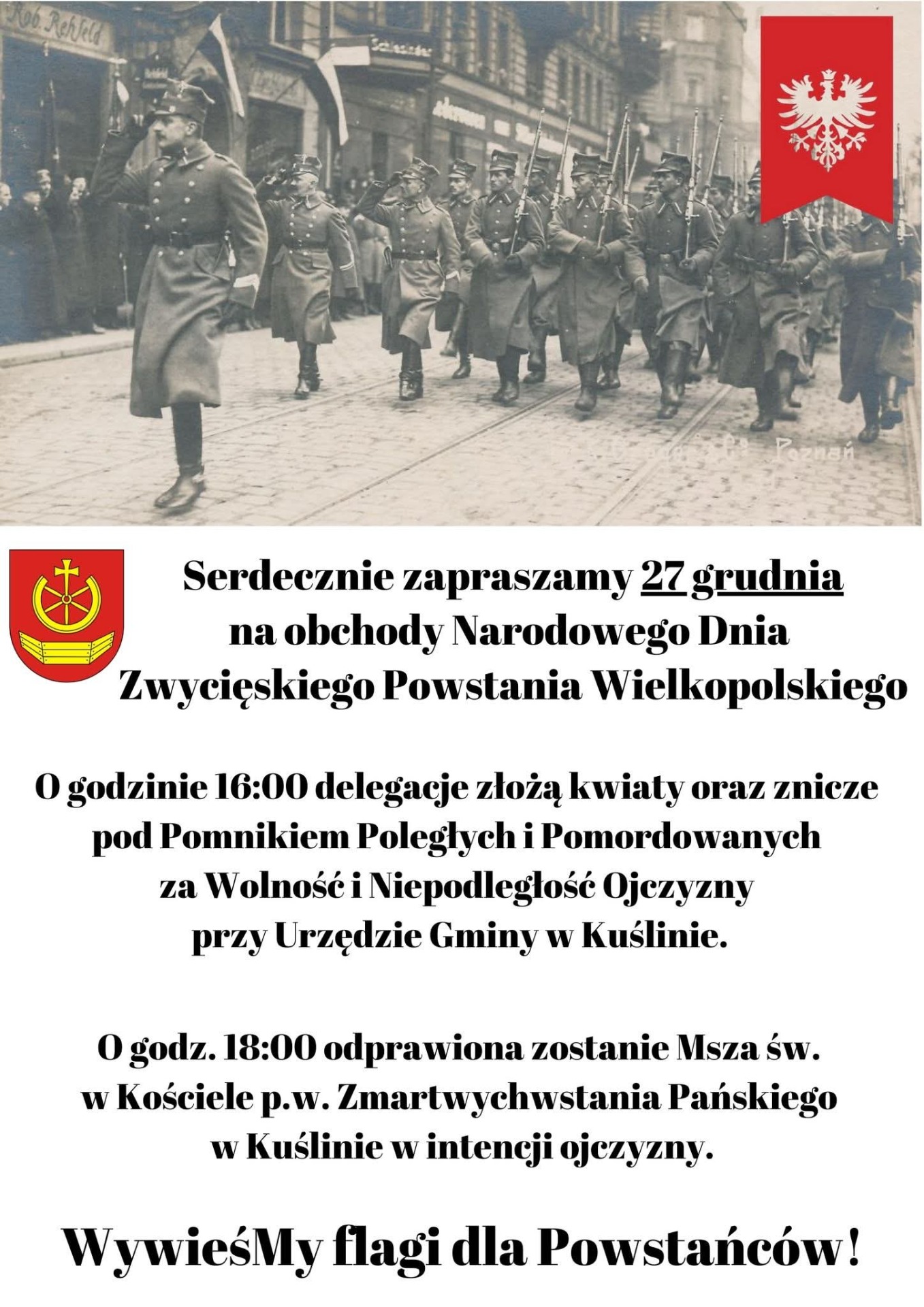 Serdecznie zapraszamy 27 grudnia na obchody Narodowego Dnia Zwycięskiego Powstania Wielkopolskiego.