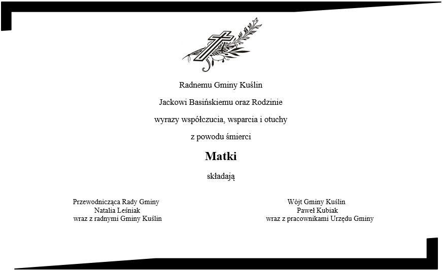Radnemu Gminy Kuślin Jackowi Basińskiemu oraz Rodzinie wyrazy współczucia, wsparcia i otuchy z powodu śmierci Matki składają