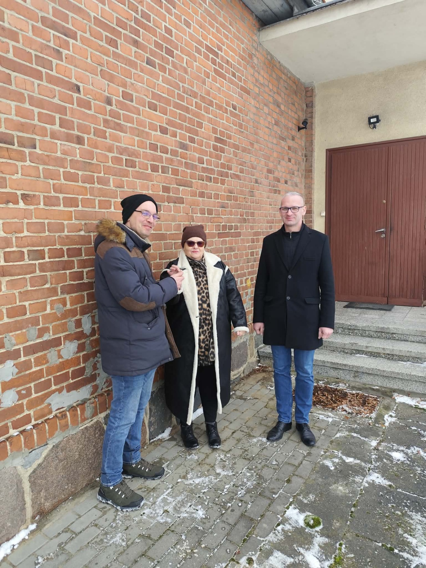 W dniu 13 stycznia bieżącego roku dotychczasowi właściciele nieruchomości dokonali uroczystego przekazania kluczy na ręce sołtysa Śliwna, pana Piotra Jaroszyka, w obecności Wójta Gminy pana Pawła Kubiaka.