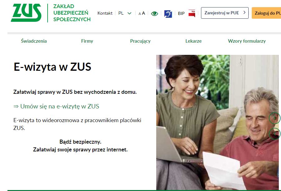 W lutym ZUS uruchomił e-wizyty w języku migowym PJM w sprawie zasiłków oraz emerytur i rent. E-wizytę mogą również zarezerwować osoby niedowidzące – na stronie e-wizyt zastosowano kolory i kontrast zgodne ze standardami dostępności WCAG 2.0.