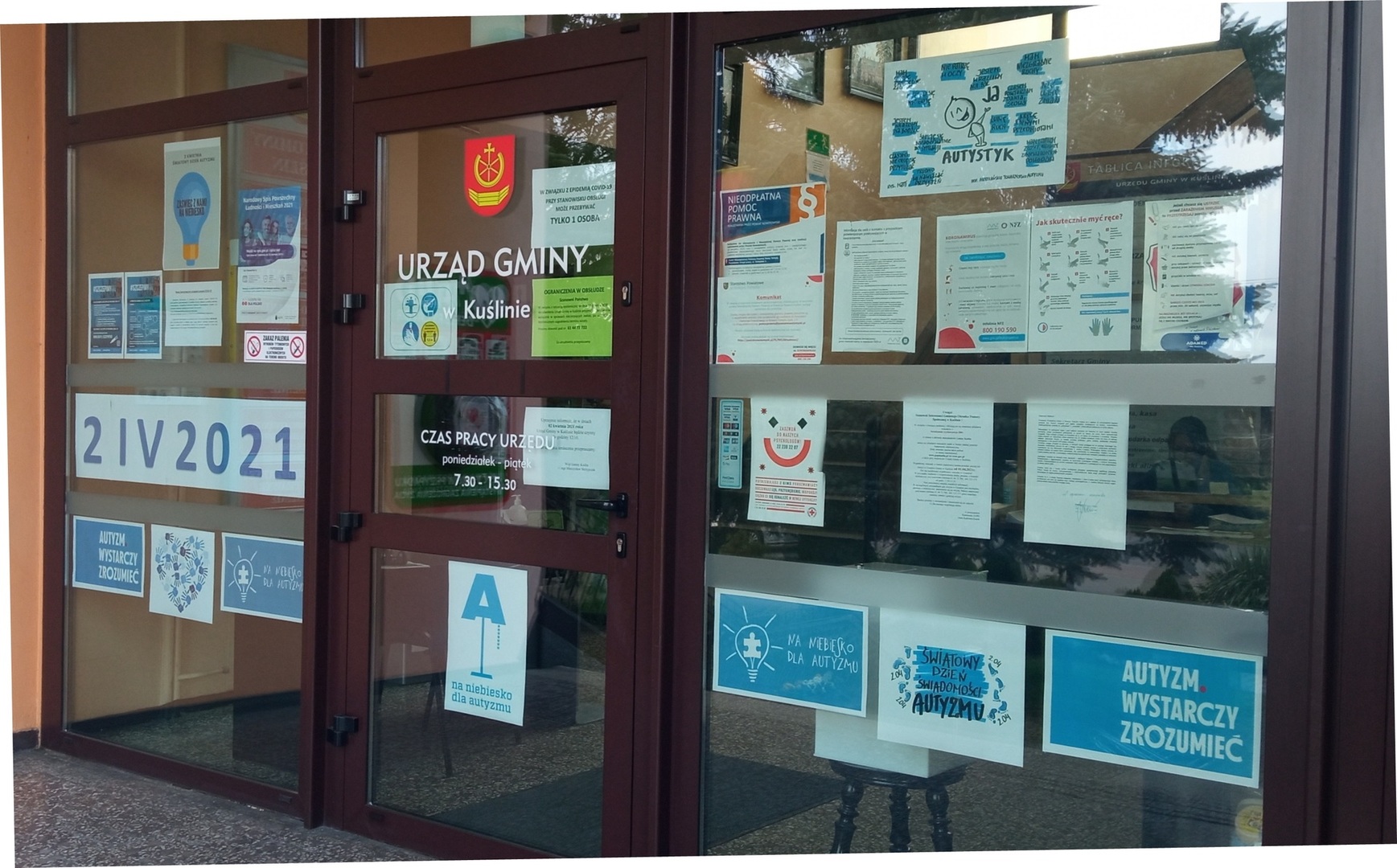 Corocznie w dniu 2 kwietnia obchodzony jest Światowy Dzień Świadomości Autyzmu. Mają one na celu podnoszenie świadomości społecznej na temat autyzmu. Symbolicznym znakiem solidarności jest kolor niebieski. W naszym Urzędzie pojawiły się niebieskie plakaty.