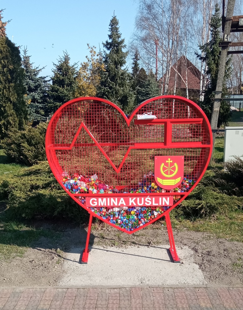 Metalowe serce na plastikowe nakrętki w Michorzewie już napełniane.