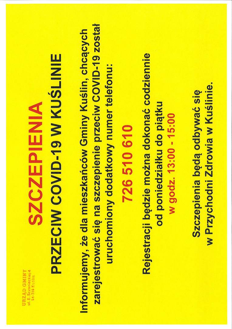 SZCZEPIENIA PRZECIWKO COVID-19 w Kuślinie.