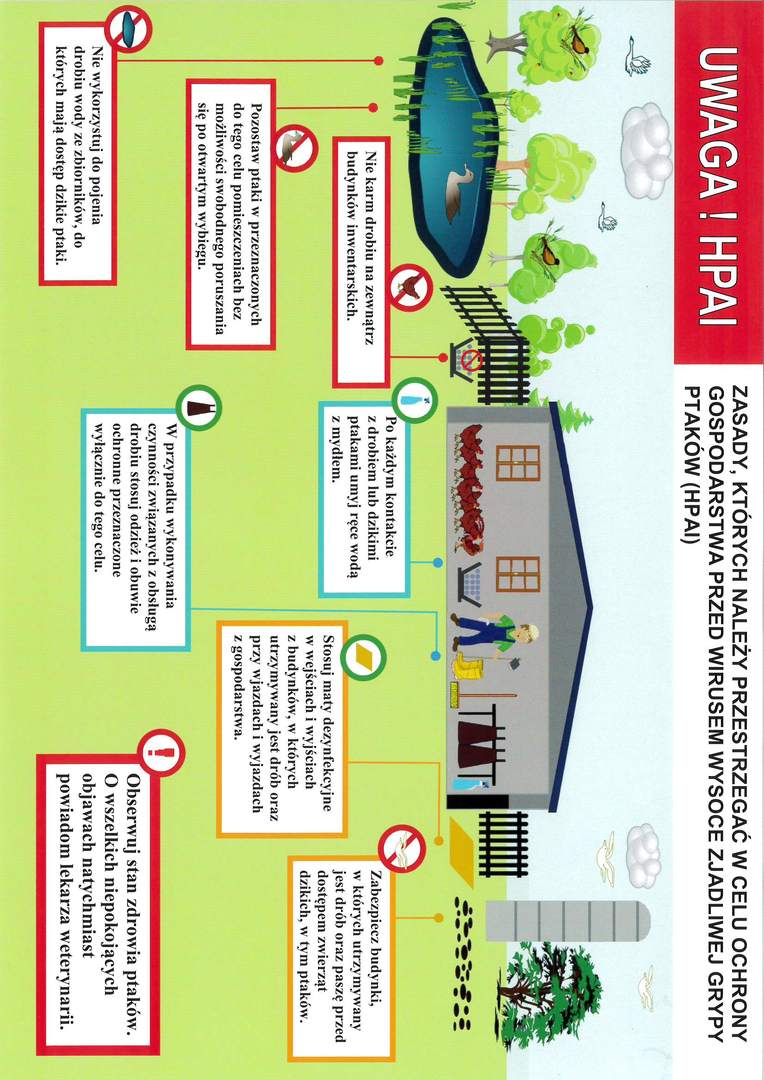 W związku z aktualną bardzo groźną sytuacją epizootyczną w zakresie występowania w województwie wielkopolskim licznych ognisk wysoce zjadliwej grypy ptaków (HPAI) prosimy o zapoznanie się z informacjami.