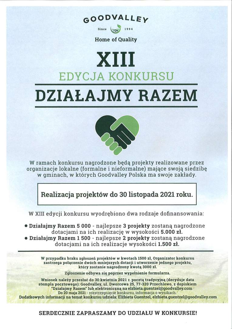 Termin składania wniosków w ramach konkursu organizowanego przez firmę Goodvalley przedłuzony został do 15 maja 2021 roku.