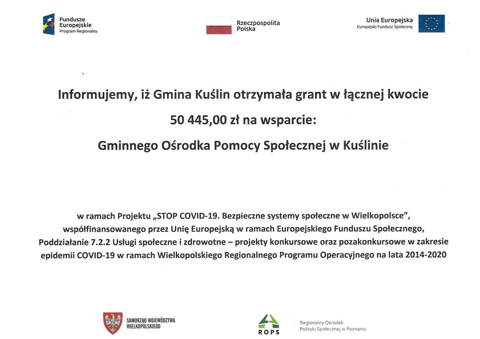 Gmina Kuślin otrzymała grant.