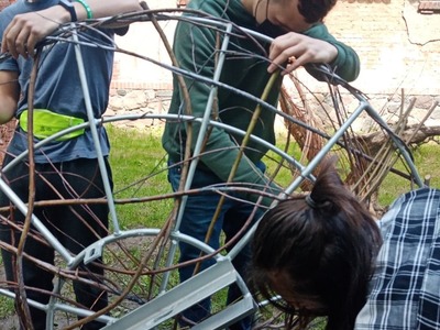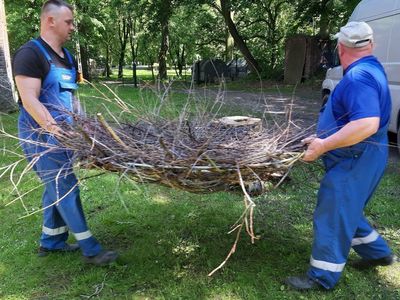We wtorek 1 czerwca 2021 r. w Urzędzie Gminy w Kuślinie odbyło się spotkanie w którym uczestniczyli Wójt Gminy Kuślin Mieczysław Skrzypczak, Pani Iwona Sadowska, inspektor ds. rolnictwa i ochrony środowiska oraz Pani Grażyna Biskup dyrektor ZSP-P w Michorzewie. Spotkanie dotyczyło bocianów, które to próbowały zaadoptować komin budynku oddziału przedszkolnego w Śliwnie, budując gniazdo, przez co gałęzie wpadały do czynnego komina. Pojawiło się niebezpieczeństwo pożarowe. Wspólnie podjęto decyzje o zamontowaniu metalowej, profesjonalnej platformy pod gniazdo. Metalowa konstrukcja została wypełniona wikliną, którą wpletli wychowankowie Ośrodka Szkolenia i Wychowania OHP w Chraplewie. Nastepnie przewieziona została przez pracowników Zakładu Obsługi Komunalnej w Kuślinie, do Śliwna. Mając na uwadze, że bociany białe są pod ochroną i ważnym jest aby mogły osiedlić się, na stałe na terenie naszej gminy, do pomocy w zamontowaniu gniazda zgłosili się mieszkańcy gminy, który mieli możliwości wykonania prac. Zostało ono zamontowane 2 czerwca 2021 roku, a pierwsze oznaki zamieszkania można było już zaobserwować w sobotę.