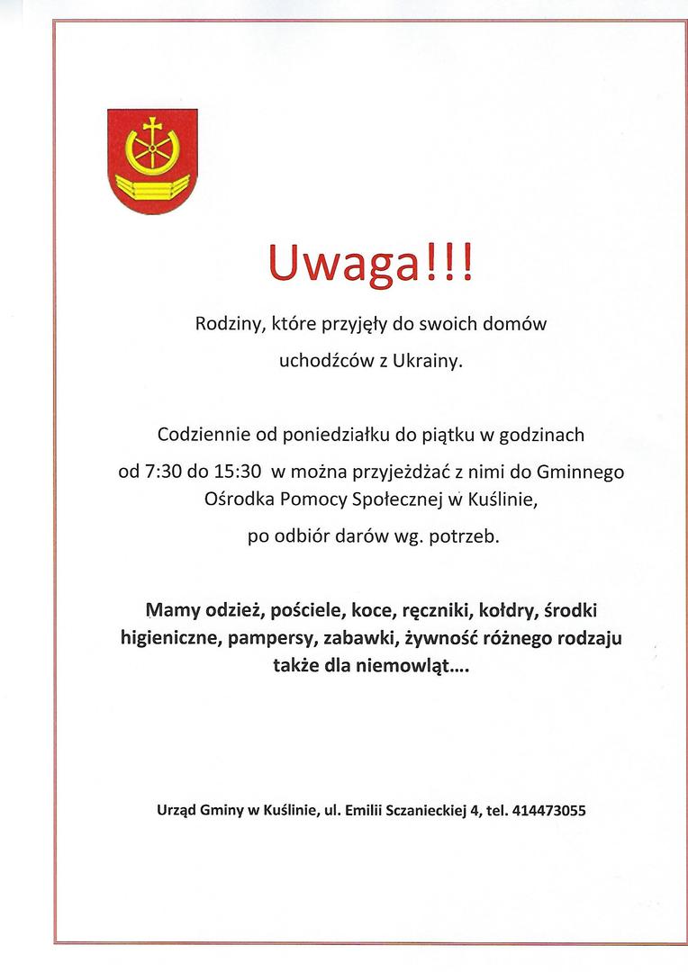 Uwaga! Informacja dla rodzin które przyjęły pod swój dach uchodźców z Ukrainy.