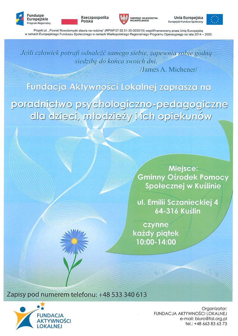 Fundacja Aktywności Lokalnej zaprasza na poradnictwo psychologiczno-pedagogiczne dla dzieci, młodzieży i ich opiekunów.