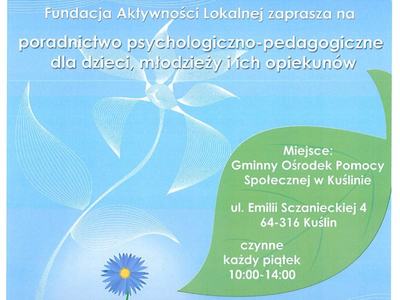 Fundacja Aktywności Lokalnej zaprasza na poradnictwo psychologiczno-pedagogiczne...