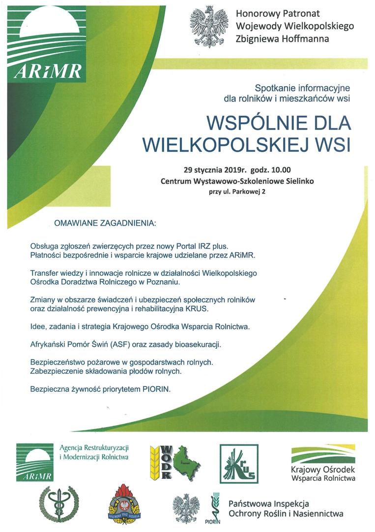 Spotkanie informacyjne dla rolników i mieszkańców wsi: Wspólnie dla Wielkopolskiej Wsi.