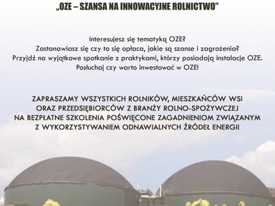 Bezpłatne szkolenie "OZE- SZANSA NA INNOWACYJNE ROLNICTWO"