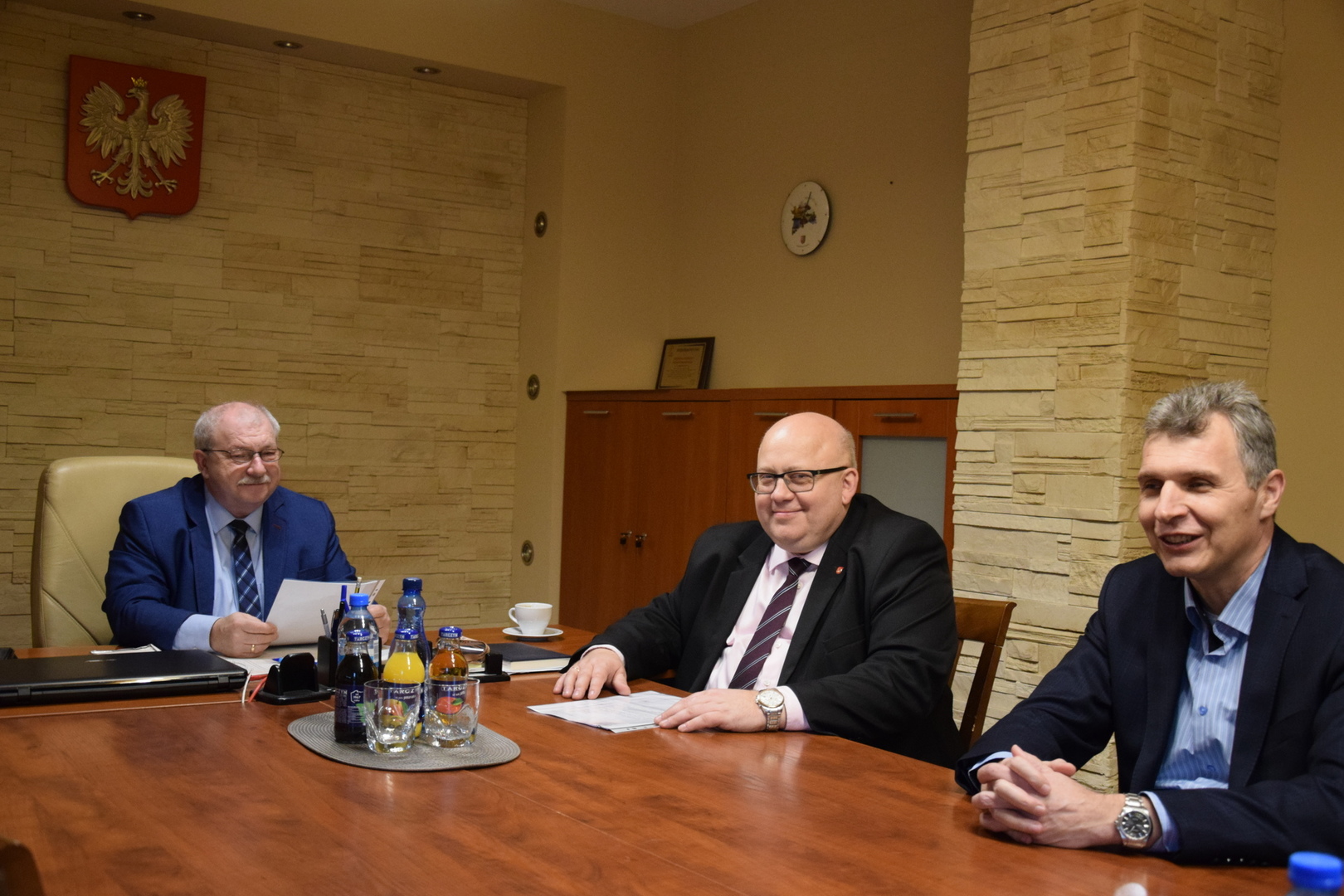 Dzisiaj Starosta Nowotomyski Andrzej Wilkoński spotkał się z Wójtem Gminy Kuślin Mieczysławem Skrzypczakiem oraz Skarbnikiem Gminy Arturem Giersberg. Spotkanie dotyczyło omówienia propozycji zaangażowania gminy Kuślin w budowę dwóch rond na skrzyżowaniach dróg powiatowych nr 2709P (Opalenica-Lwówek) z drogami nr 2793P (Kuślin-Buk) oraz nr 2738P (Głuponie-Duszniki), w związku z planowaną przez powiat modernizacją drogi Lwówek-Opalenica. Gmina Kuślin zabezpieczyła na ten cel środki finansowe na opracowanie dokumentacji projektowej, natomiast Starostwo Powiatowe rozpocznie procedury w tej sprawie.
