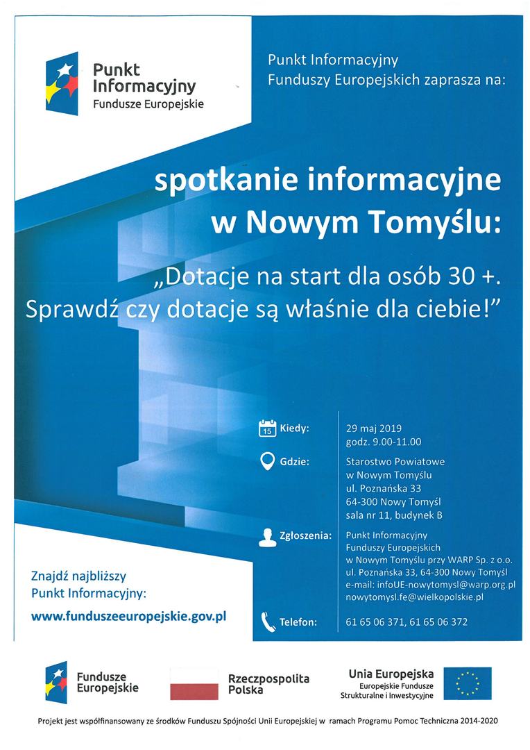 Punkt Informacyjny Funduszy Europejskich zaprasza na spotkanie informacyjne w Nowym Tomyślu.
