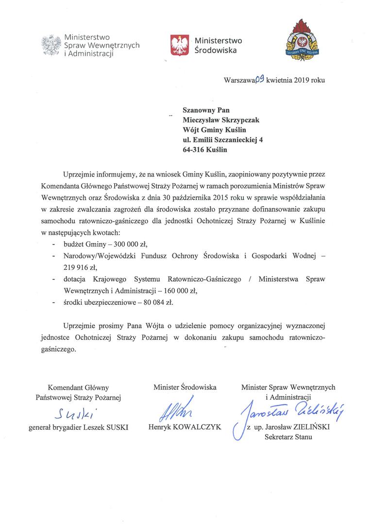 W dniu wczorajszym w Wielkopolskim Urzędzie Wojewódzkim w Poznaniu wręczono promesy na dofinansowanie zakupu wozów ratowniczo-gaśniczych dla jednostek ochotniczych straży pożarnych. Dokumenty potwierdzające dofinansowanie zakupu pojazdów wręczyli: wojewoda wielkopolski Zbigniew Hoffmann, wiceprzewodniczący Parlamentu Europejskiego profesor Zdzisław Krasnodębski oraz wielkopolski komendant wojewódzki Państwowej Straży Pożarnej bryg. Andrzej Bartkowiak.