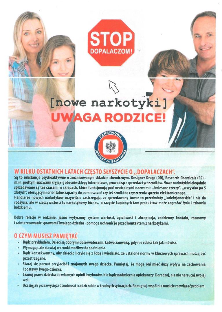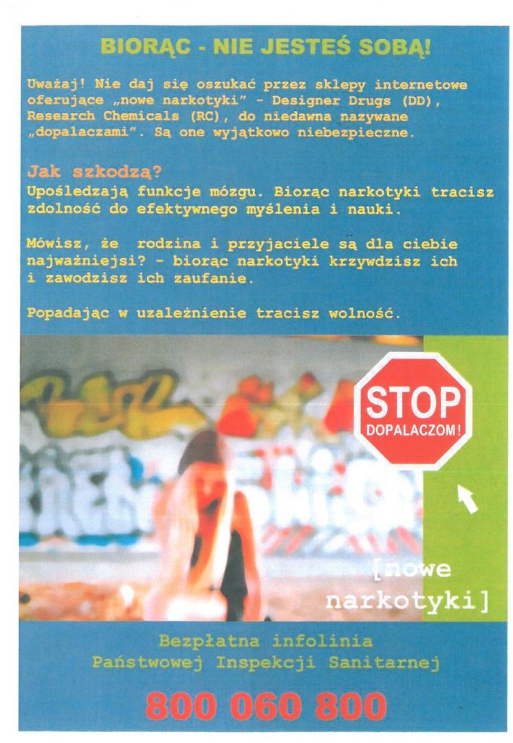 Państwowy Powiatowy Inspektorat Sanitarny w Nowym Tomyślu prezentuje materiały dotyczące profilaktyki zażywania środków zastępczych - dopalaczy.