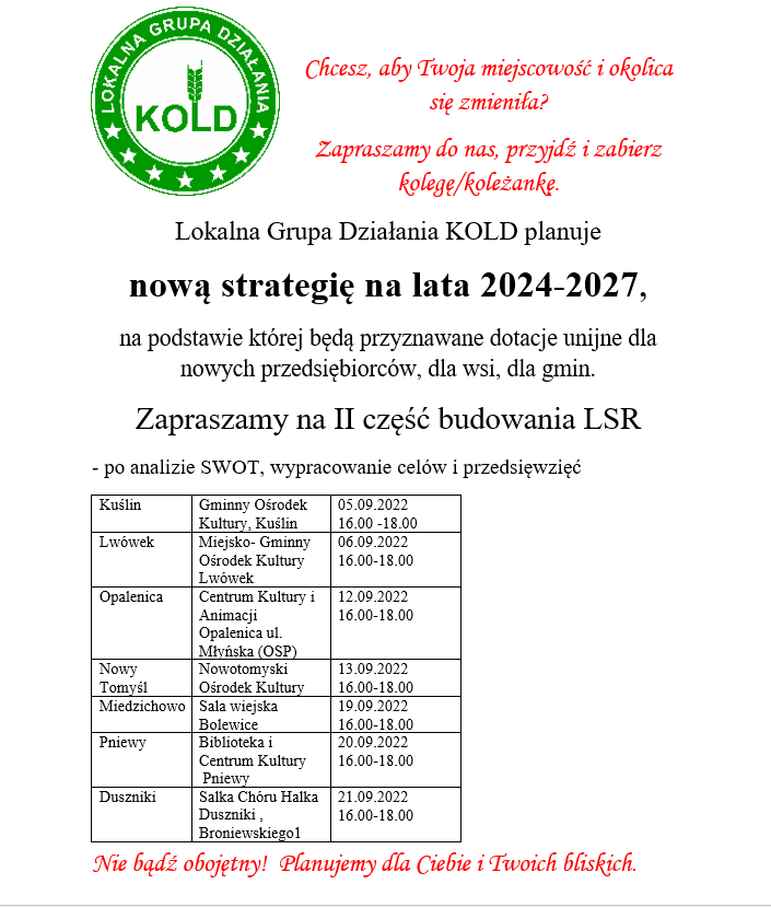 Lokalna Grupa Działania KOLD zaprasza na II etap planowania nowej strategii na lata 2024-2027.