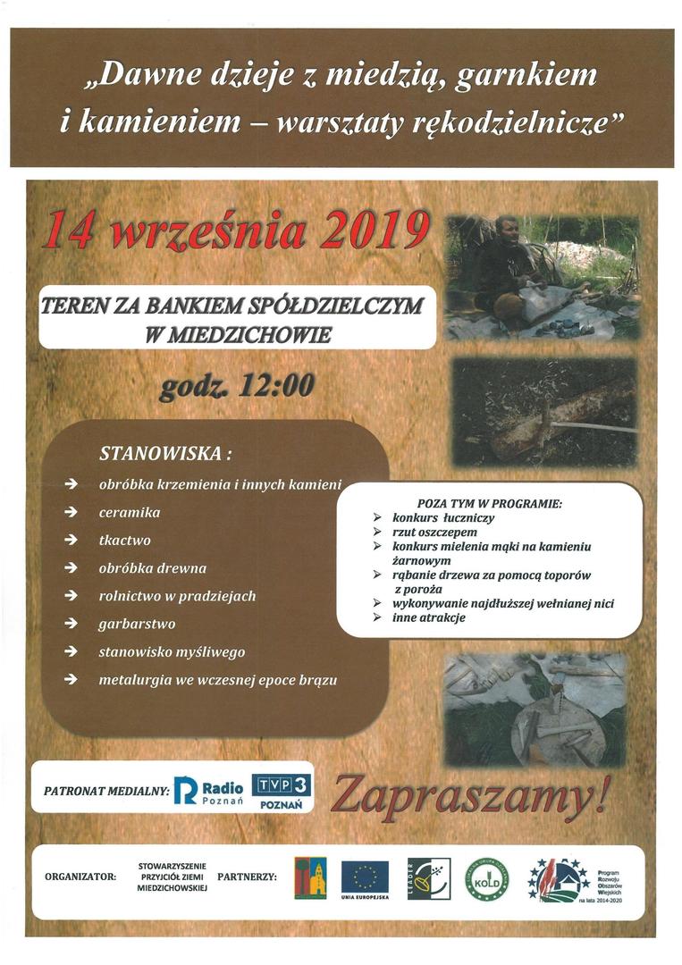 "Dawne dzieje z miedzą, garnkiem i kamieniem - warsztaty rękodzielnicze" w Miedzichowie.