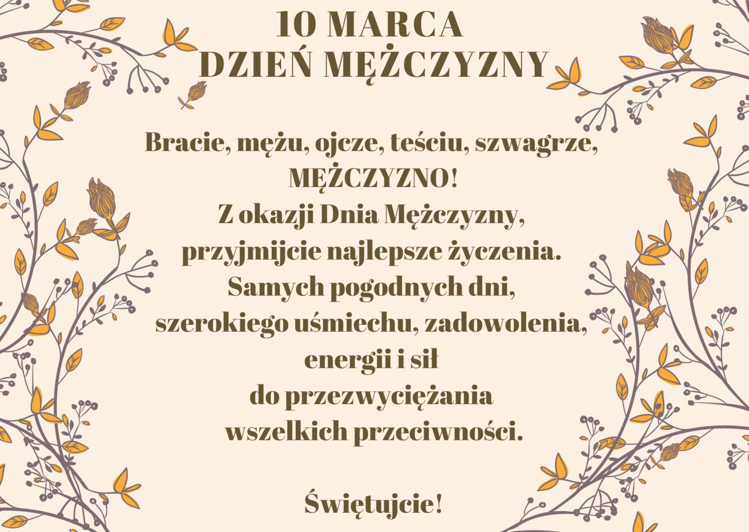 Z okazji Dnia Mężczyzny, przyjmijcie najlepsze życzenia. Samych pogodnych dni, szerokiego uśmiechu, zadowolenia, energii i sił do przezwyciężania wszelkich przeciwności.