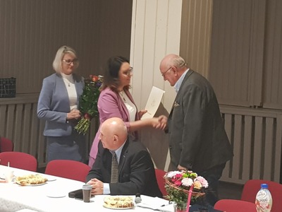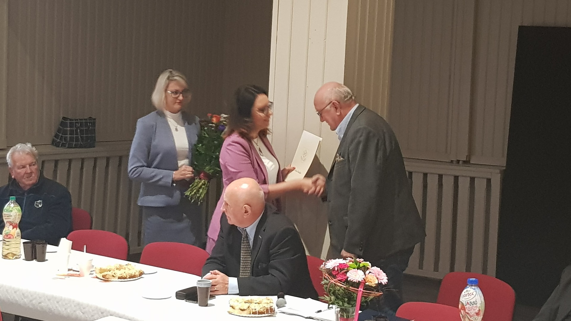 Pan Marian Raczkowiak, członek zarządu i przedstawiciel Koła nr 4 w Kuślinie, wygłosił krótkie przemówienie do zgromadzonych członków. Życzenia z tej okazji składali Przewodniczący Zarządu Zenon Matuszczak oraz w imieniu Wójta Gminy Kuślin oraz swoim, Kierownik Gminnego Ośrodka Pomocy Społecznej w Kuślinie Pani Anna Kędziora.