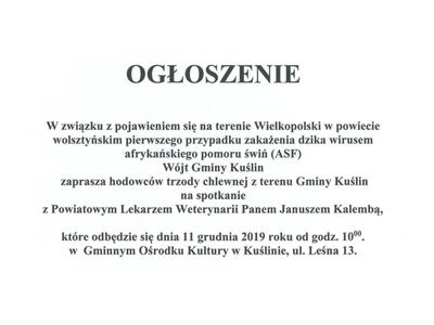UWAGA ! Spotkanie z Powiatowym Lekarzem Weterynarii.