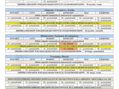 Harmonogram odbioru odpadów komunalnych od stycznia do czerwca 2020 r. dla Gminy Kuślin.