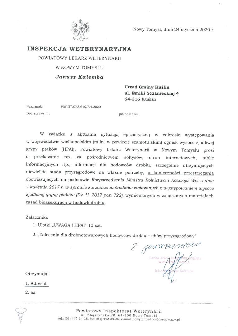Uwaga! Ważna informacja Powiatowego Lekarza Weterynarii w Nowym Tomyślu.
