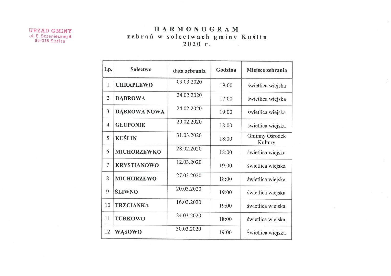 Harmonogram zebrań wiejskich sprawozdawczych w sołectwach gminy Kuślin.
