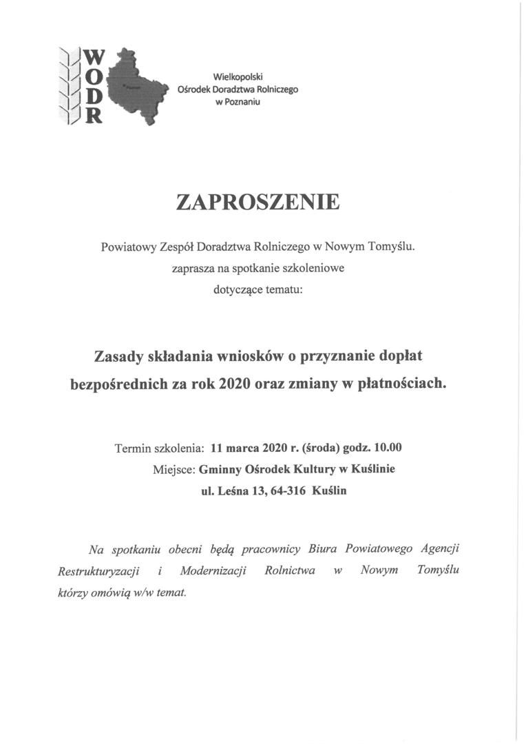 Powiatowy Zespół Doradztwa Rolniczego zaprasza na spotkanie szkoleniowe.