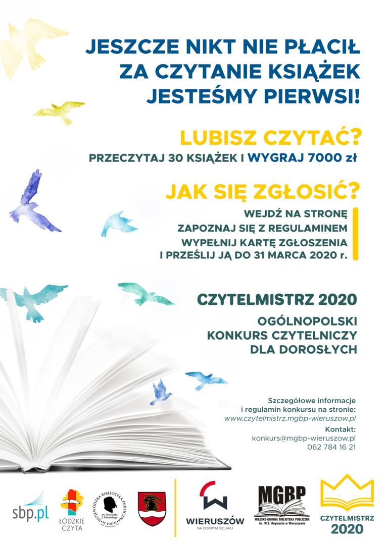 Książki to Twoja pasja, lub zwyczajnie chcesz spróbować swoich sił w konkursie czytelniczym i mieć szanse na zdobycie nawet 7 000 zł i tytułu "CZYTELMISTRZA 2020"?