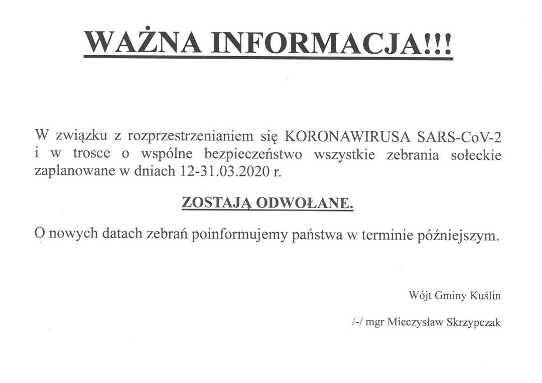 WAŻNA INFORMACJA Wójta Gminy Kuślin