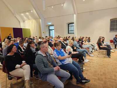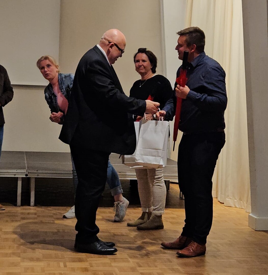 W dniu wczorajszym tj. 11 kwietnia 2024 roku na zaproszenie organizatorów i uczestników, Wójt Gminy Kuślin Mieczysław Skrzypczak oraz Dyrektor Zespołu Szkoła Podstawowa - Przedszkole w Wąsowie Pani Maria Przybylska udali się do Zamku Trebnitz. Podczas wizyty wzięli udział w zakończeniu projektu, podczas którego uczestnicy przedstawili prezentację końcową, zwieńczenie czterech dni pobytu w Centrum Edukacji i Spotkań.
