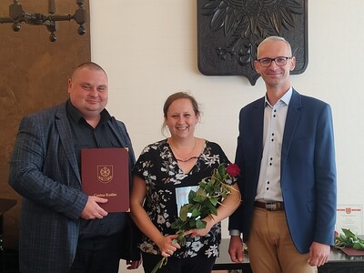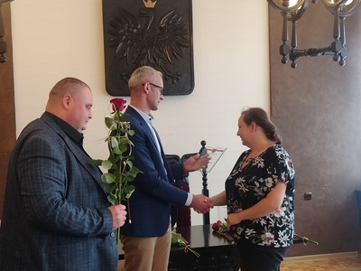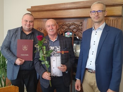 Wójt Gminy Paweł Kubiak oraz Sekretarz Gminy Robert Kłos wspólnie wręczyli sołtysom podziękowania oraz kwiaty za wieloletnią, dobrze układającą się współpracę oraz zaangażowanie i oddanie na rzecz lokalnej społeczności.
